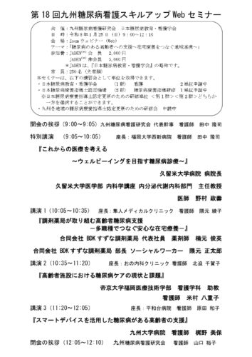 1月25日 第18回九州糖尿病看護スキルアップWebセミナー開催