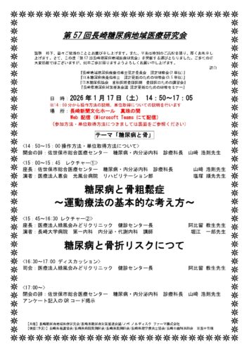 1月17日 第57回長崎糖尿病地域医療研究会開催