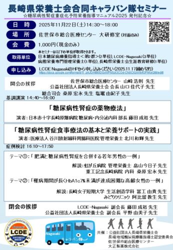共催:(公社)長崎県栄養士会・長崎地域糖尿病療養指導士認定委員会・佐世保市総合医療センター・大正製薬株式会社
